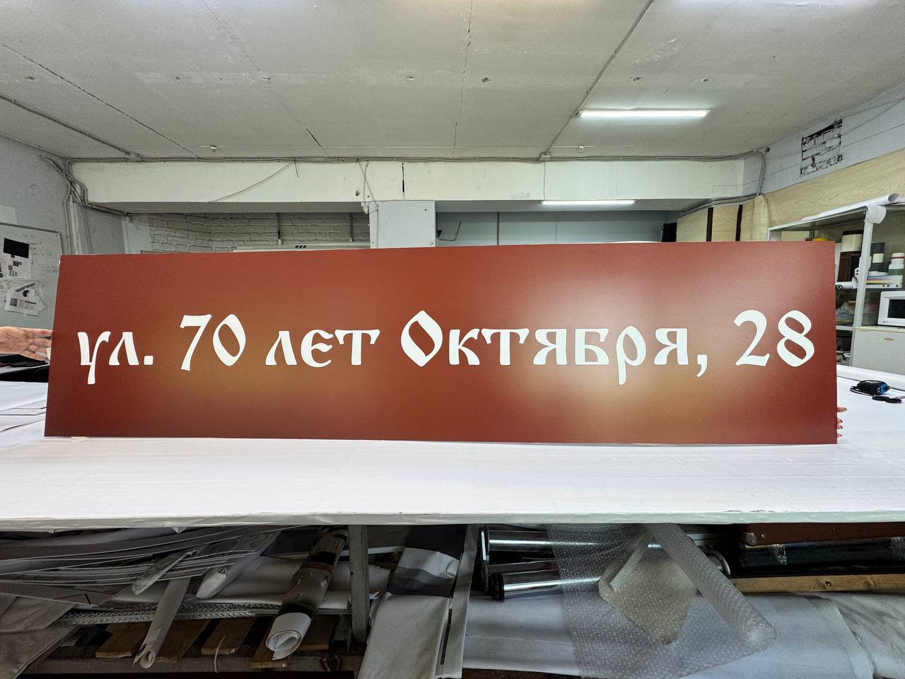 Стандартный материал для изготовления адресных табличек — это ПВХ-пластик, который имеет толщину от 3 до 5 миллиметров. Выбор толщины зависит от пожеланий клиента или размера таблички. Но также можем предложить изготовление из других материалов.